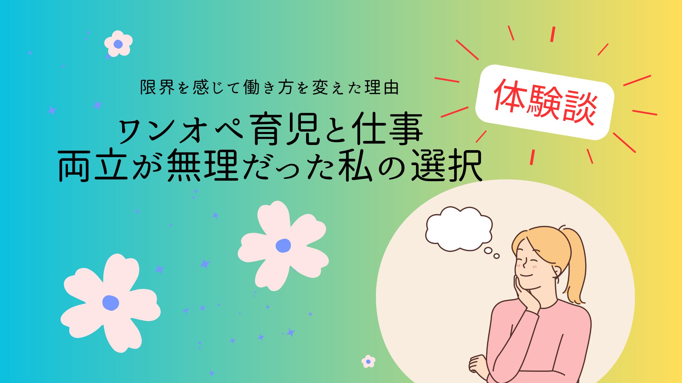 ワンオペ育児と仕事の両立に限界を感じている方にとって、働き方を見直すことは大切な選択肢のひとつです。